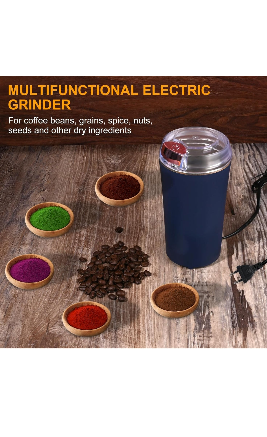 Versatile Electric Coffee Grinder: Able to grind a variety of dry ingredients such as pepper, cumin, fenugreek, parsley, cinnamon, star anise, mint, soy, quinoa, sorghum, rice and sugar, this electric spice grinder is perfect as a small kitchen gadget! (Note: Please do not use the electric grinder for wet grinding or water grinding.)